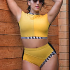 This bikini is thoughtfully designed with chest pads for added support, without any steel wiring, allowing for a comfortable and flattering fit. The high waist style not only enhances your curves but also offers a touch of elegance that sets this swimwear apart from the rest.